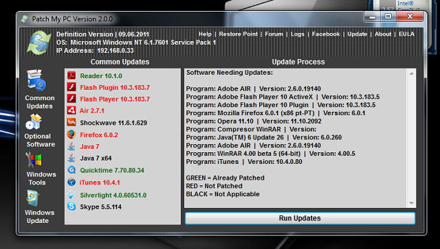 Patch My PC pesquisa atualizações de alguns programas e realiza a atualização sem você precisar fazer nada. Ele funciona apenas com Adobe Reader, Flash Plugin, Air, Shockwave, Firefox, Java, Quicktime, iTunes, Silverlight e Skype. São programas que marcam presença quase obrigatória na maioria dos computadores.