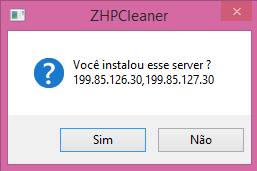 Caso durante o escaneamento o ZHPCleaner encontre algum server ou DNS desconhecido ou suspeito, poderá aparecer uma mensagem como esta da imagem abaixo perguntando se foi você que instalou (ou configurou) isto: