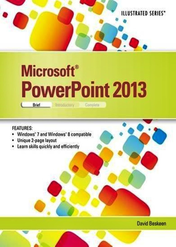 Praised by instructors for its concise, focused approach and user-friendly format, the Illustrated Series engages both computer rookies and hot shots in mastering Microsoft PowerPoint 2013 quickly and efficiently. Skills are accessible and easy-to-follow thanks to the Illustrated Series' hallmark 2-page layout, which allows students to see an entire task in one view.