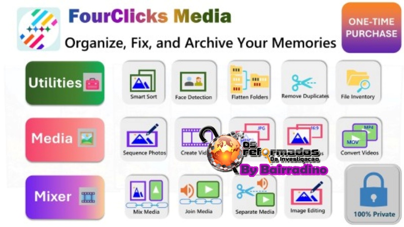 Pare de se afogar na bagunça digital! Seu PC está cheio de milhares de fotos desorganizadas? Você tem problemas para trabalhar com arquivos importados do iPhone ou de outros dispositivos? O FourClicks Media é o conjunto de ferramentas inteligente e offline essencial, projetado para corrigir, classificar, organizar e arquivar sua vida digital sem precisar da nuvem. Ele limpa pastas bagunçadas e converte arquivos incompatíveis para que funcionem perfeitamente no Windows; oferece opções abrangentes de classificação para fotos e vídeos, além de permitir que você transforme enormes bibliotecas de fotos em vídeos de apresentação de slides em 4K, economizando espaço, no seu computador.