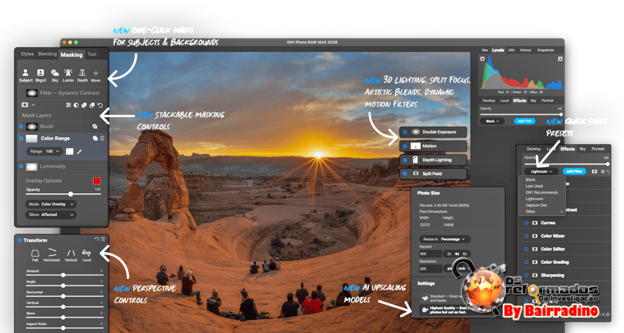 O Photo RAW está recebendo uma GRANDE atualização este mês! A versão 2026 traz novas ferramentas de mascaramento inovadoras, novos filtros criativos, nova IA para ampliações em super-resolução e muito mais.